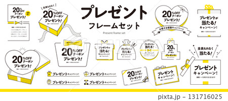 簡易禮物和禮物相框素材組(標題、標題、相框)/黃色