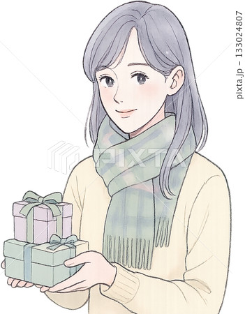 拿著禮物的女孩的插圖