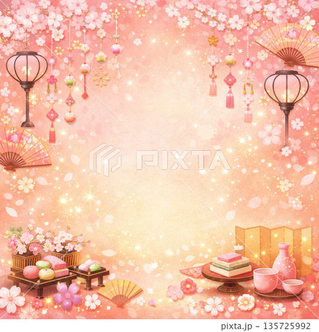 女兒節背景素材,桃子節插圖