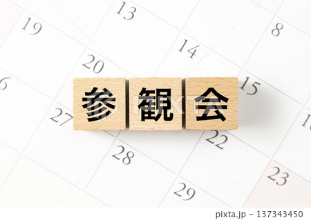 一塊寫著「開放參觀」字樣的積木和一個日曆
