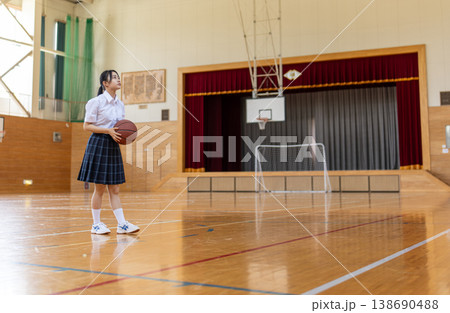 在教室和教學大樓裡用擴音器歡呼的女性(學生、女國中生、女高中生)