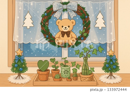 冬季窗戶和熊形花環 | 冬季窗戶和熊形花環插圖