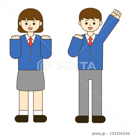 身穿綠色制服外套的男女學生背靠背站立的插圖[無背景]