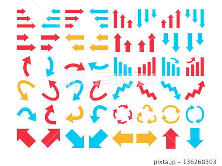 一套簡單的箭頭圖標,包含紅色、藍色和黃色三種顏色。