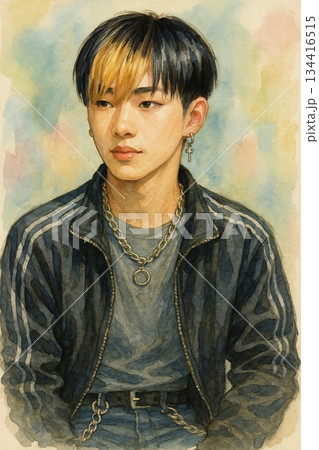 中性風格短髮青年肖像 水彩人物插畫