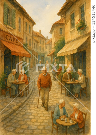 和藹老人的畫 | 健康的老年生活方式水彩風景