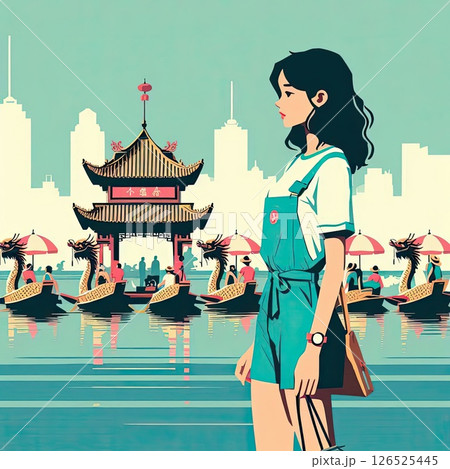 Dragon Boat Festival Celebration and Dragon Boat Race Scene with Generative AI.