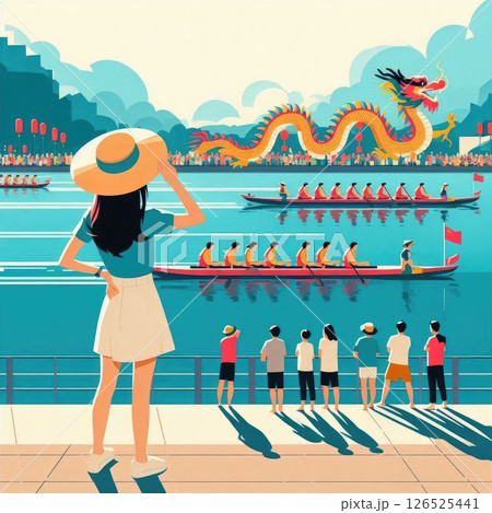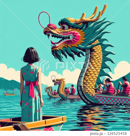 Dragon Boat Festival Celebration and Dragon Boat Race Scene with Generative AI.