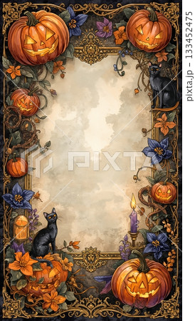 帶有黑貓和南瓜的哥德式萬聖節框架