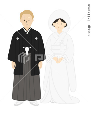婚禮,身著日本傳統服裝的新郎新娘插圖