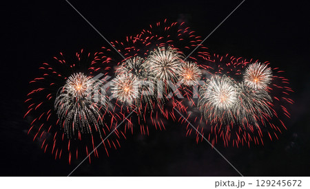 Isolated on black sky background. Isolated firework ready to use for decoration in any photograph ,poster, backdrop to celebrate the festival, Christmas, New year and any events.