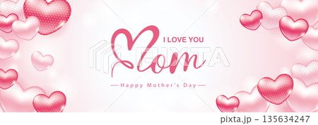 母親節3D立體愛心與浪漫抽象背景橫幅廣告海報宣傳單向量素材圖片,也適用婦女節、情人節、紀念日、婚禮