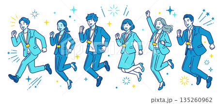 實現目標的年輕男女上班族的向量插圖素材_可進行行編輯_顏色