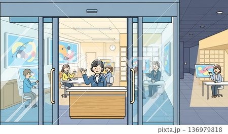 接待處的女子分行大樓插圖
