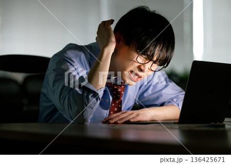 男醫生,醫生,看著電腦時感到沮喪、煩惱、擔心