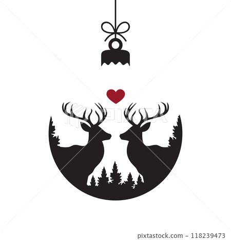 插圖素材: hanging christmas ball with deer decoration vector illustration