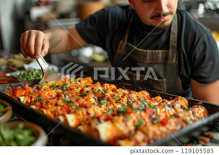 A person serving a plate of enchiladas at a...[119105585],此圖庫插圖素材具有餐廳,飯店,侍者的關鍵詞。此插圖素材是Mix and Match studio / (No.644455)的作品。您可以購買圖像大小從影像尺寸從S至LUS$5.00以上的尺寸。註冊成為免費會員後,您可以下載帶有浮水印的圖片以確認畫質及使用收藏夾的服務。 查看全部