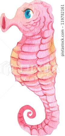 插圖素材: Pink Seahorse Cartoon, Watercolor Hand-drawn Illustration
