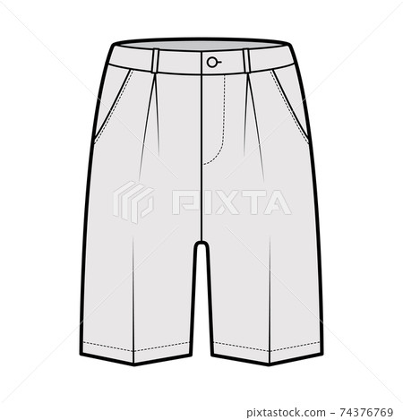 插圖素材: Short Bermuda dress pants technical fashion illustration above-the-knee length, single pleat, low normal waist, rise