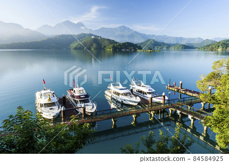 照片素材(圖片): The scenery of Marina at Sun Moon Lake in the morning, the famous attraction in Nantou, Taiwan.