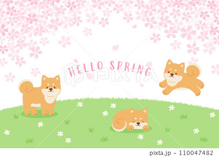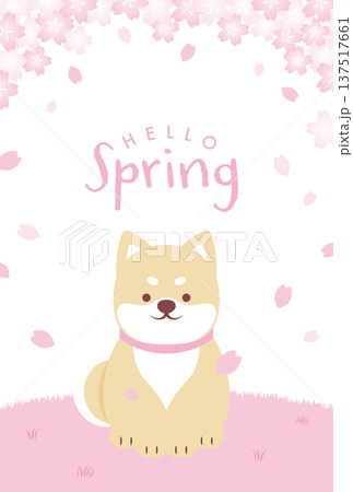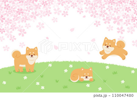 柴犬和櫻花的插圖