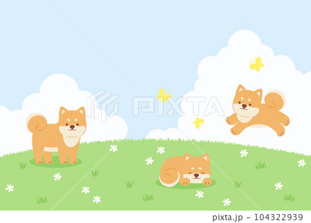 柴犬在田野裡玩耍的背景插圖