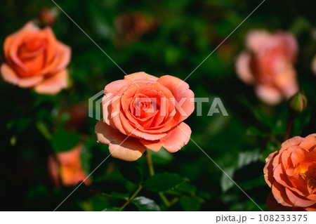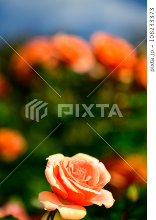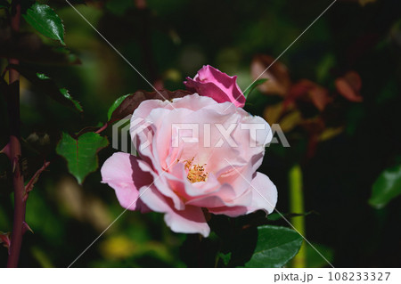 秋天的玫瑰花園裡盛開的粉紅玫瑰