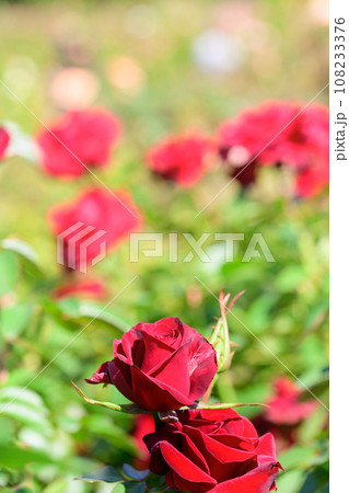 秋天的玫瑰花園裡盛開的紅玫瑰