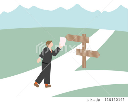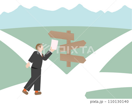 一位男商人擔心哪一個在岔路口。商業與生活十字路口的概念[矢量圖素材]