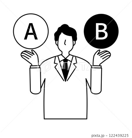 圖:一位西裝革履的男士微笑著比較 A 和 B