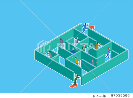 商人人和箭頭。一個決定選擇人生轉折點的人的插圖