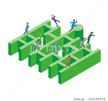 一個人試圖進入迷宮。球門處有一座獎盃。