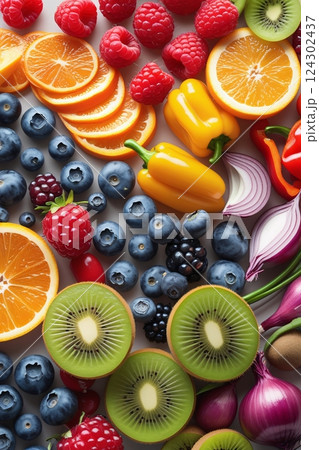 用水彩筆觸繪製的水果圖形材料 - 生成式 AI