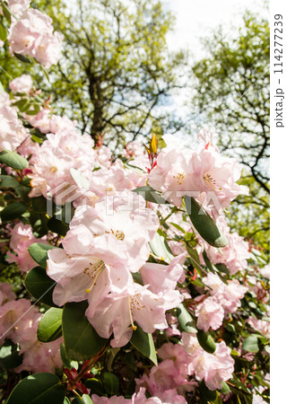 倫敦郊區里士滿公園的伊莎貝拉種植園盛開的淡粉紅色杜鵑花