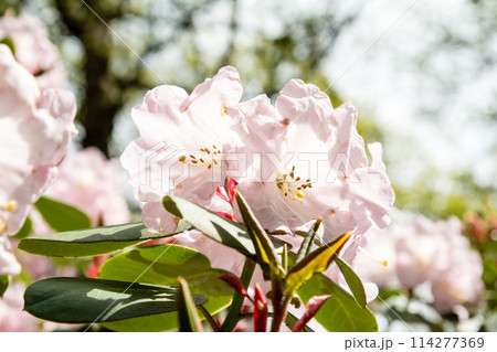 倫敦郊區里士滿公園裡,淡紅色的杜鵑花在明媚的春日陽光下盛開