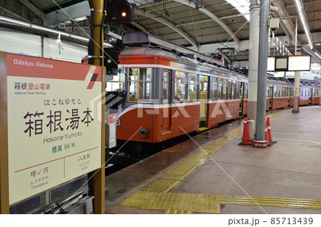 箱根登山鐵道停靠箱根湯本月台。