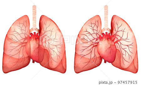 人肺、心臟和血管的水彩風格插圖集