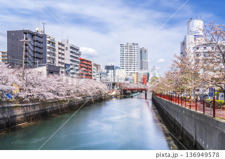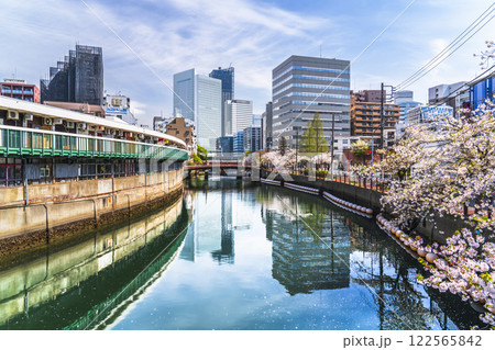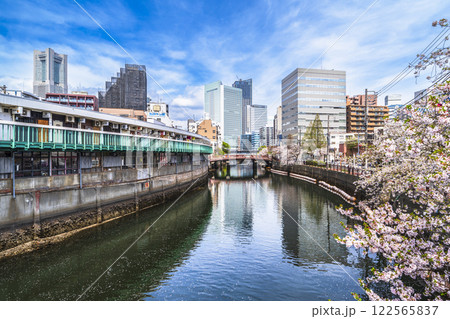春天的橫濱/大岡河的城市景觀[神奈川縣/橫濱市]