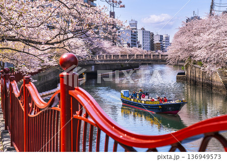 觀光船沿著櫻花盛開的大岡川航行 [神奈川縣橫濱市]