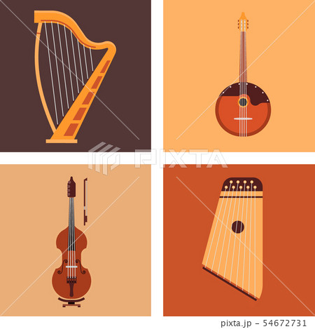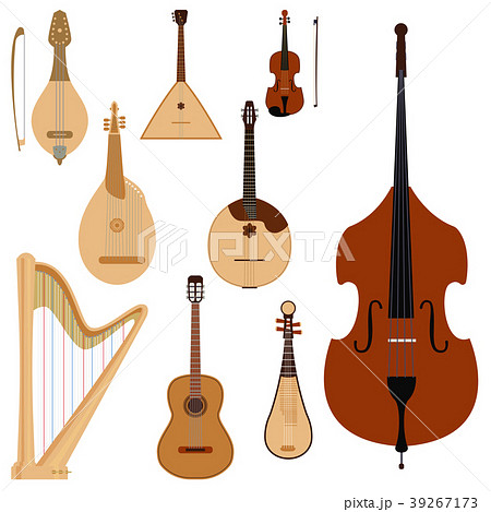 Set of stringed musical instruments classical orchestra art sound tool and acoustic symphony