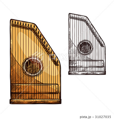 Cimbalom, Gusli, harp, folk. Music festival poster. String musical instruments. Competition. A set of vector illustrations. Minimalistic design. Banner, flyer, cover, print.