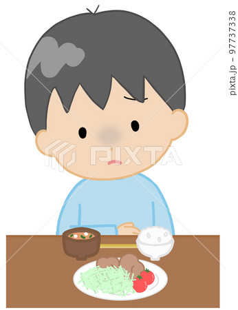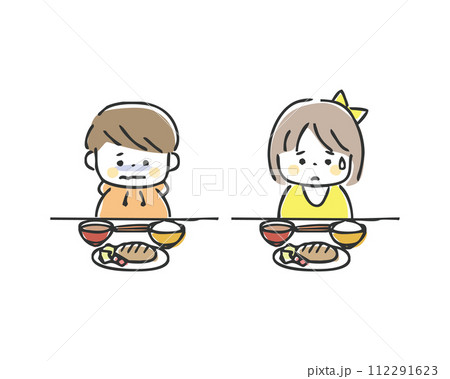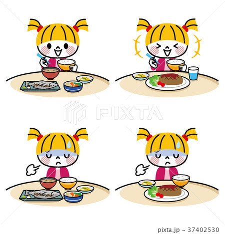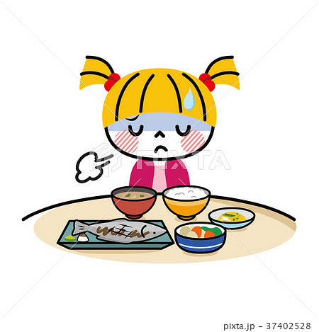 沒有胃口的女孩,孩子不能吃,喜歡和不喜歡,早餐插圖