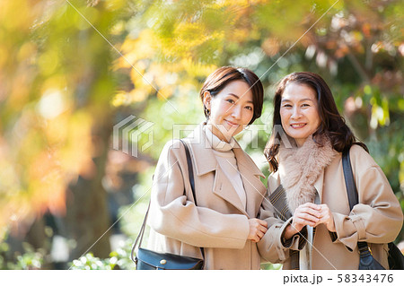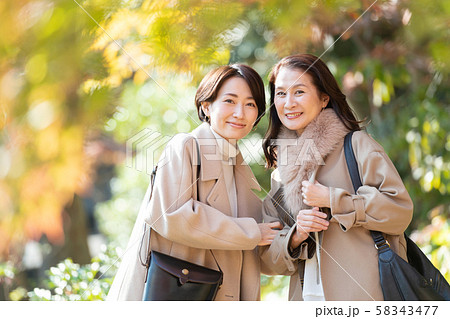 旅行秋天秋葉母親女兒父母和兒童家庭旅行圖像