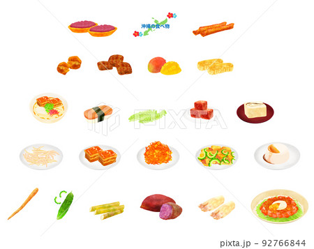 沖繩人氣美食特產插畫①(豬肉蛋飯糰、沙田安達吉、苦瓜冠軍)