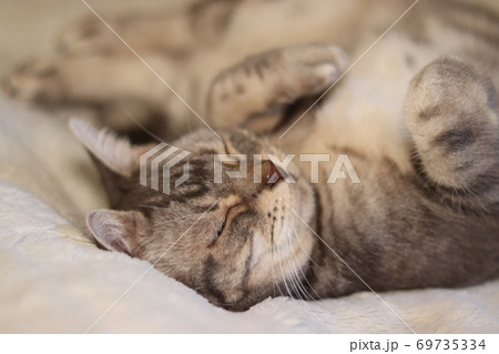 貓睡覺時表情愉快美國短毛貓銀虎斑