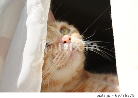 美國短毛棕色虎斑貓,鼻子在溫暖的地方曬太陽