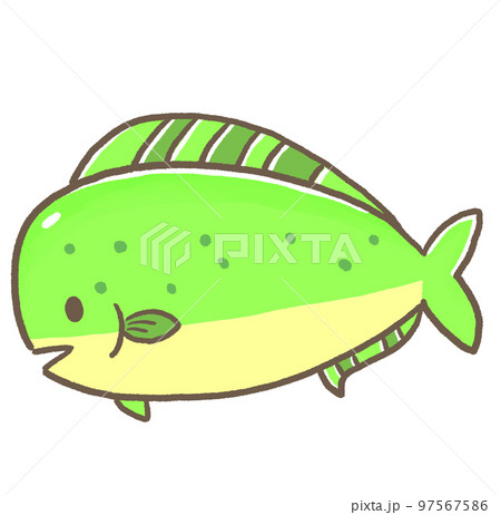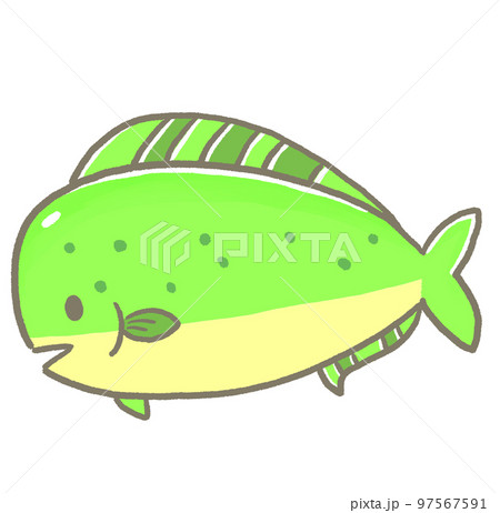 Mahi-mahi or Common Dolphinfish Swimming Up Retro