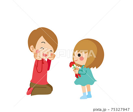 母親節那天,小學生送給媽媽康乃馨的插圖(線畫,彩色)
