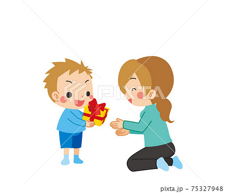 一個可愛的小男孩,在母親節送禮物給他的母親的插圖白色背景兒童每天