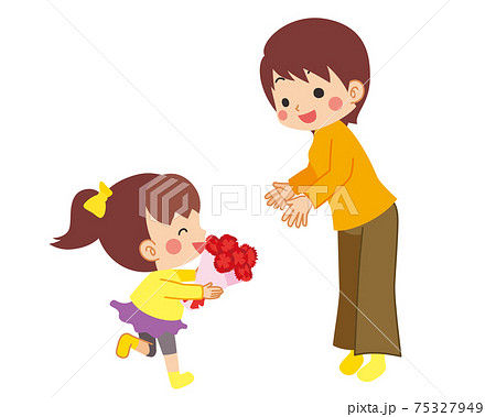 一個可愛的女孩沖向她的母親和遞一束康乃馨的插圖白色背景兒童每天